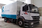 4、按全啟按鈕,引風機首先啟動,高壓水啟動;四個刷盤下降至工作高度,旋轉(zhuǎn);三個負壓吸口導流罩也降至工作高度;車啟步、工作開始。道槽、路基和路面同時清潔。